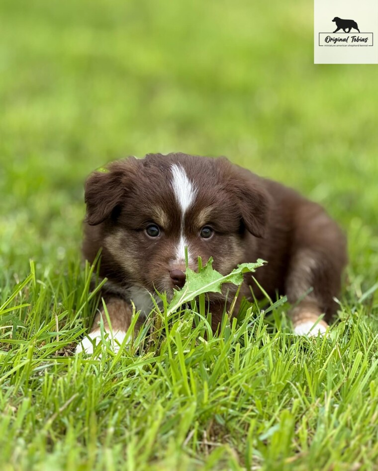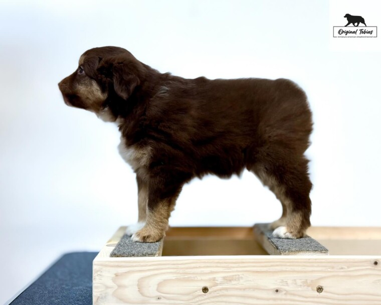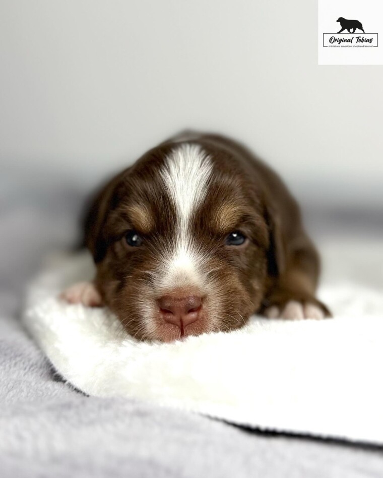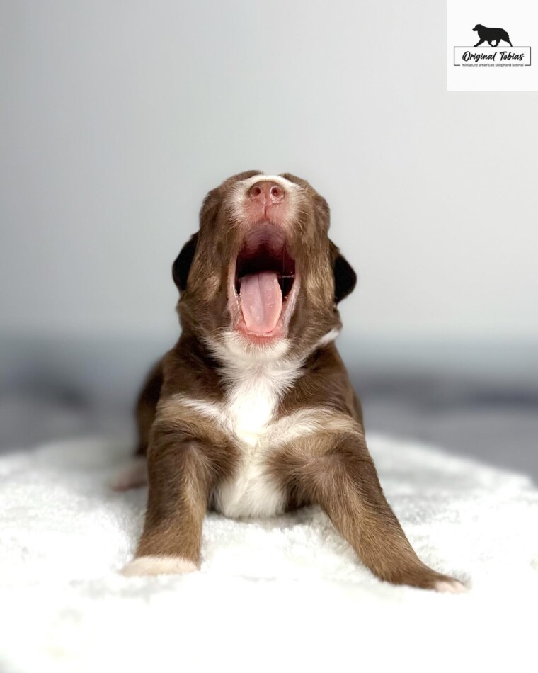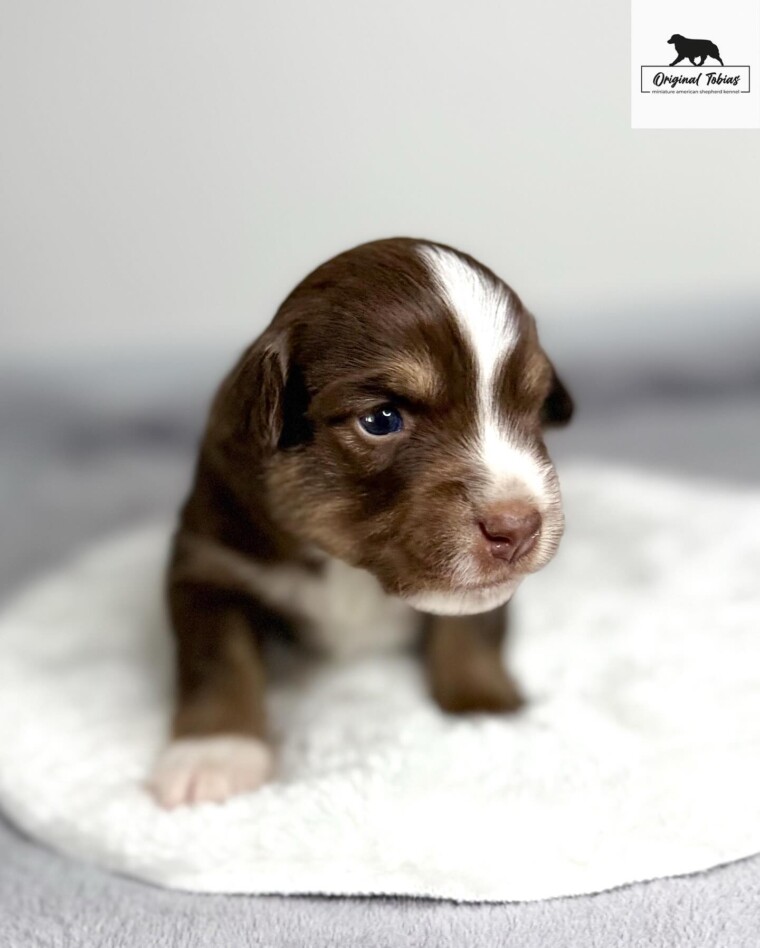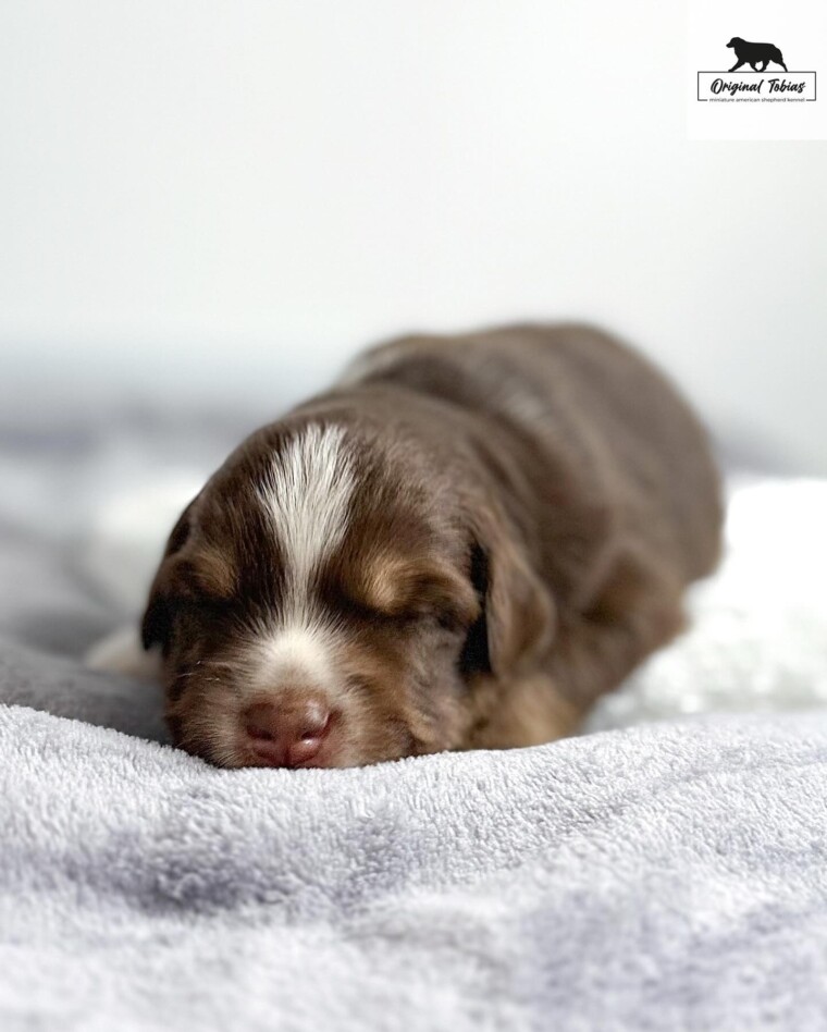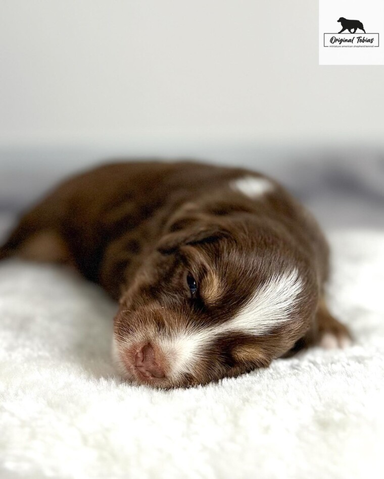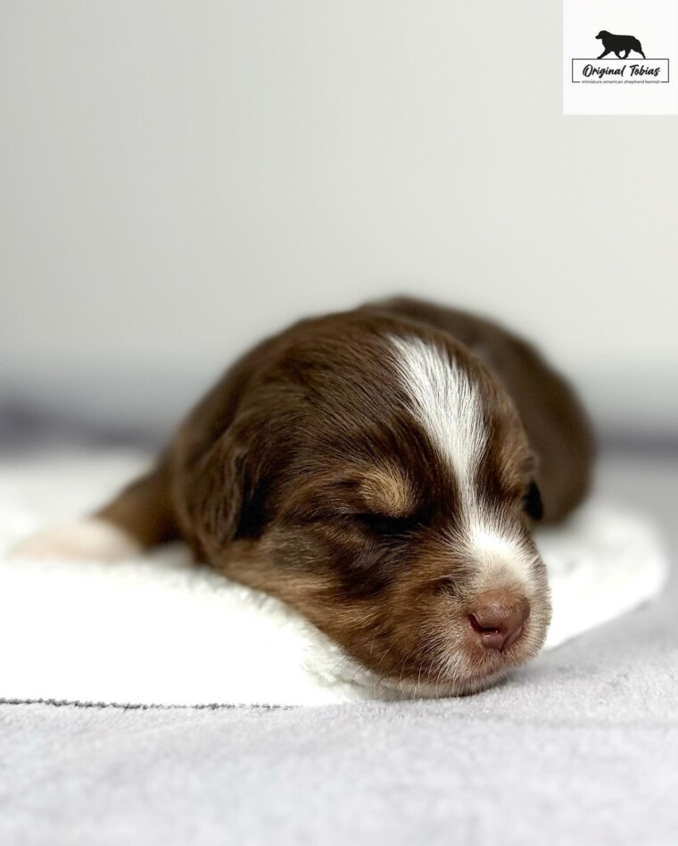 Confident Woody Original Tobias je red tri pes s velmi tmavou hnědou. Woodymu jsme přiřadili zelenou barvu. Woody se narodil jako první štěně těsně před půlnocí a vážil 270 g.