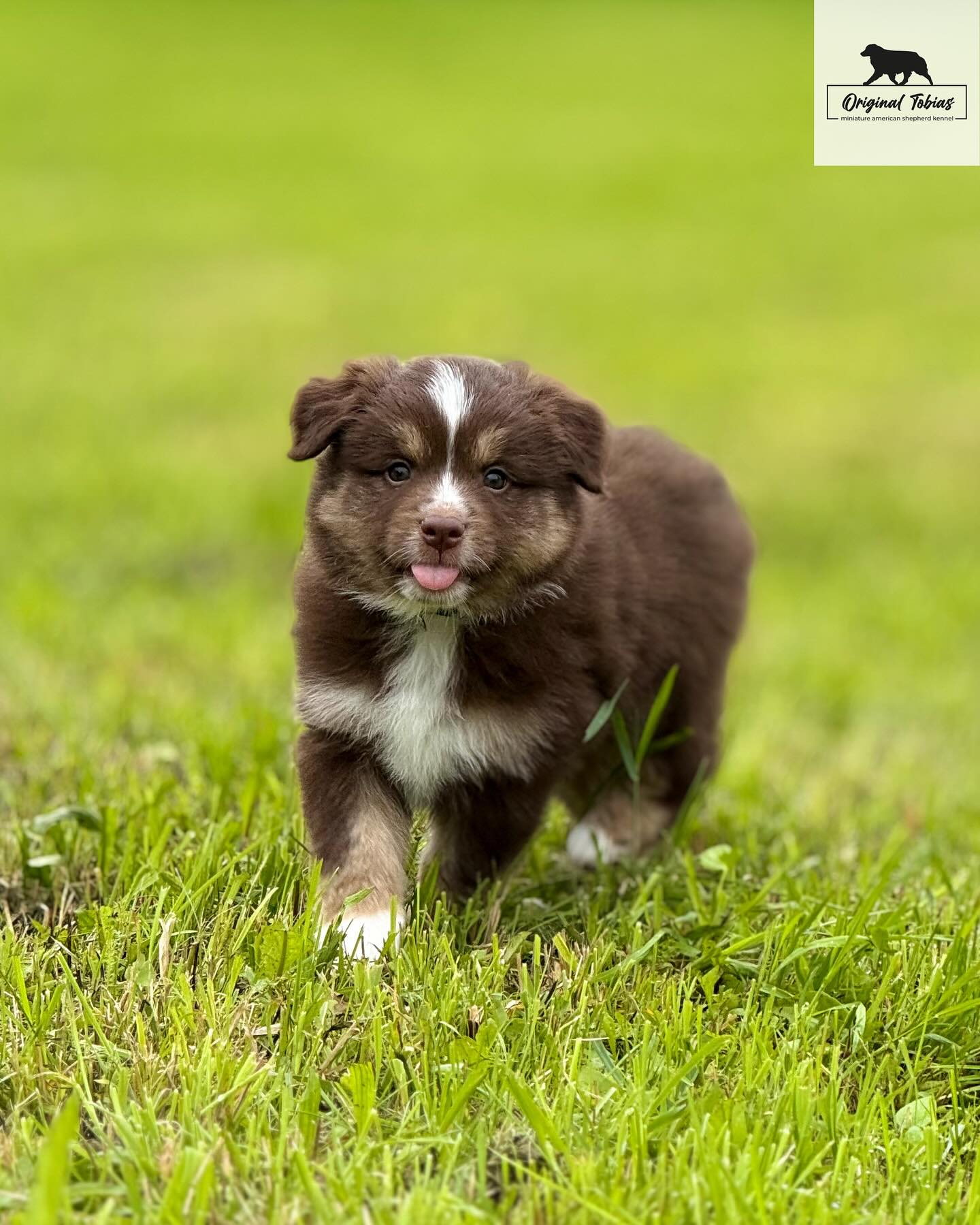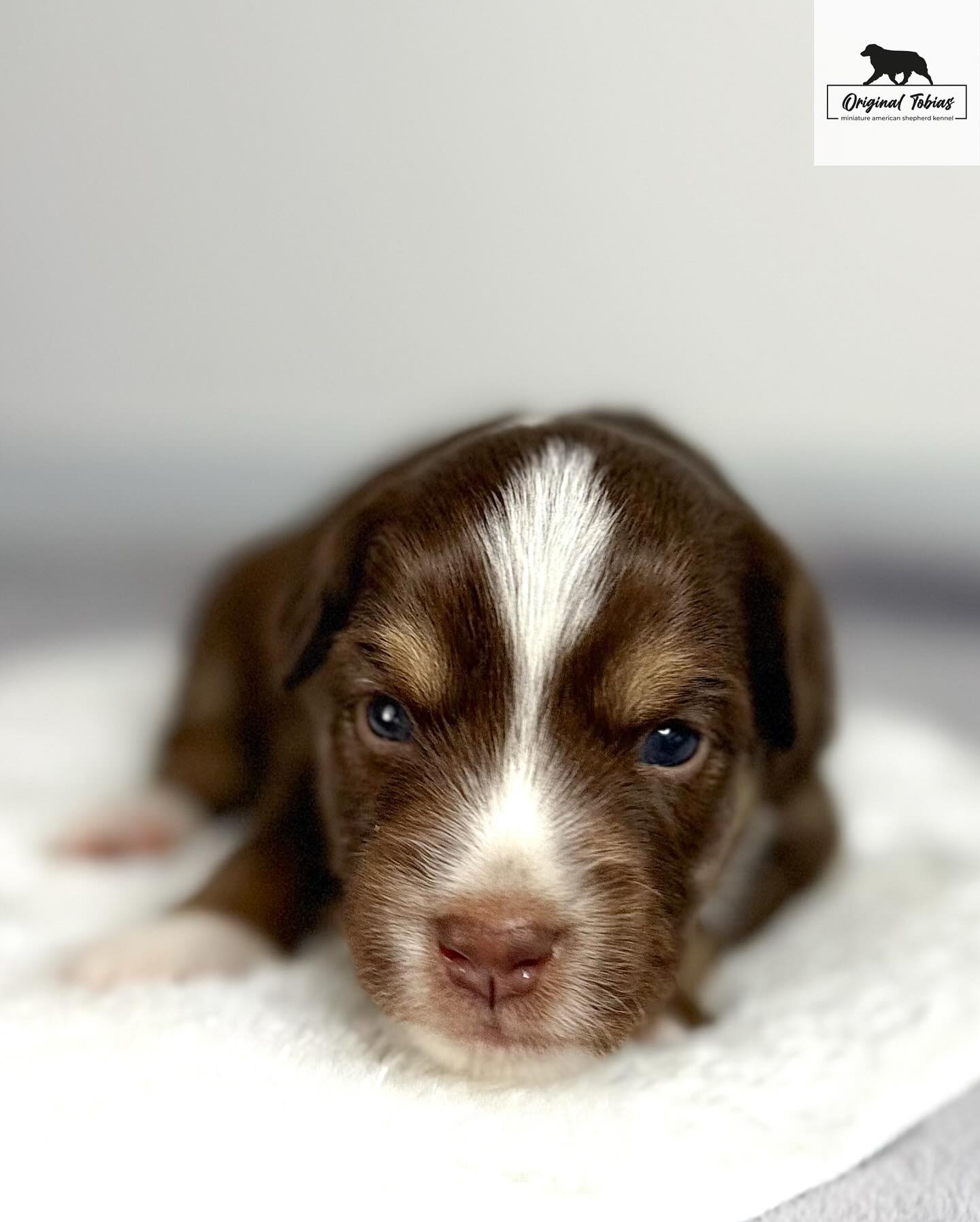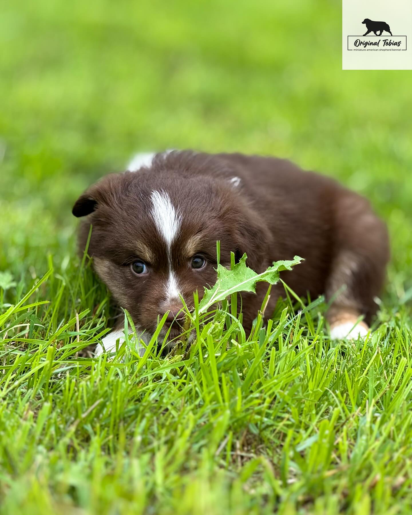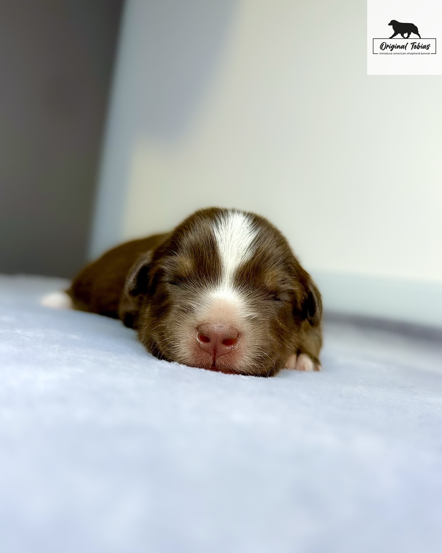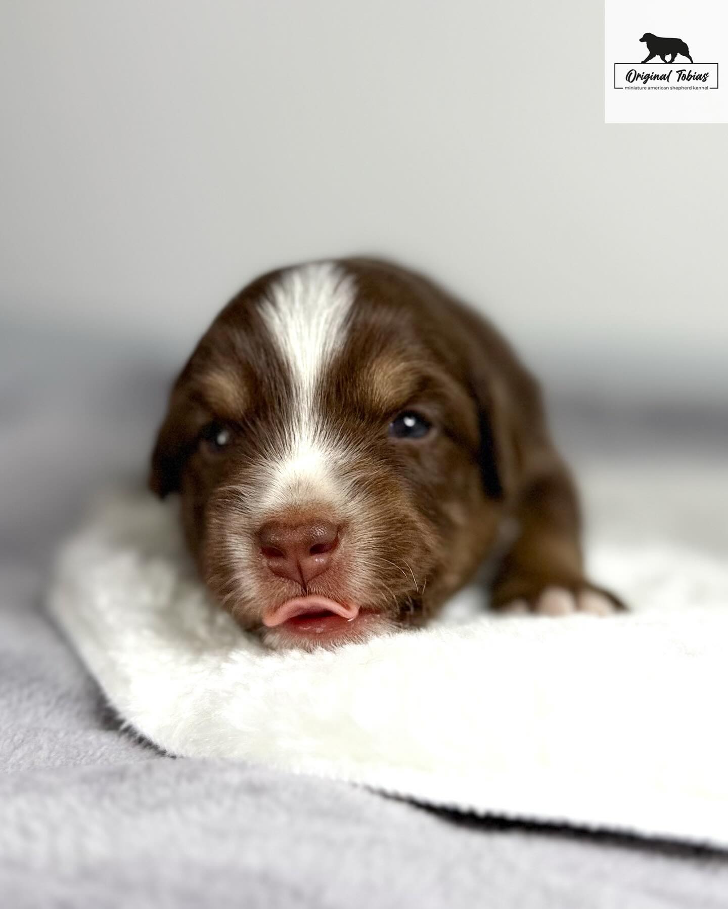 Confident Woody Original Tobias je red tri pes s velmi tmavou hnědou. Woodymu jsme přiřadili zelenou barvu. Woody se narodil jako první štěně těsně před půlnocí a vážil 270 g.