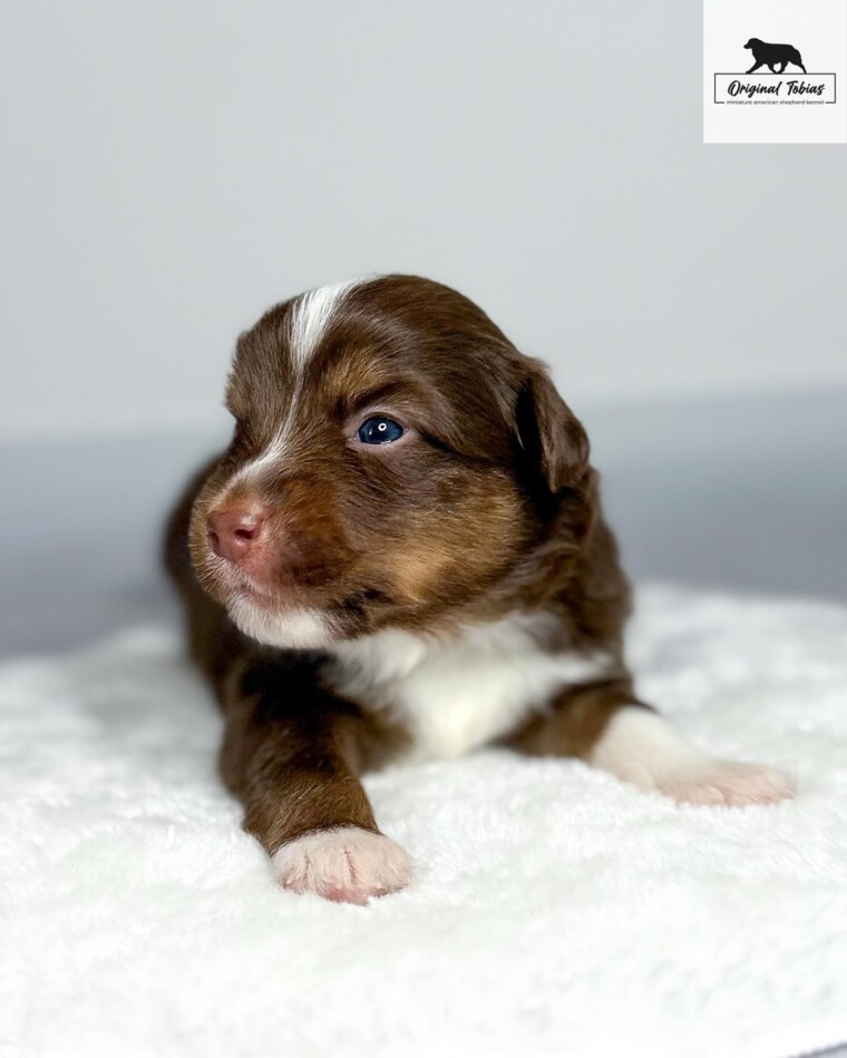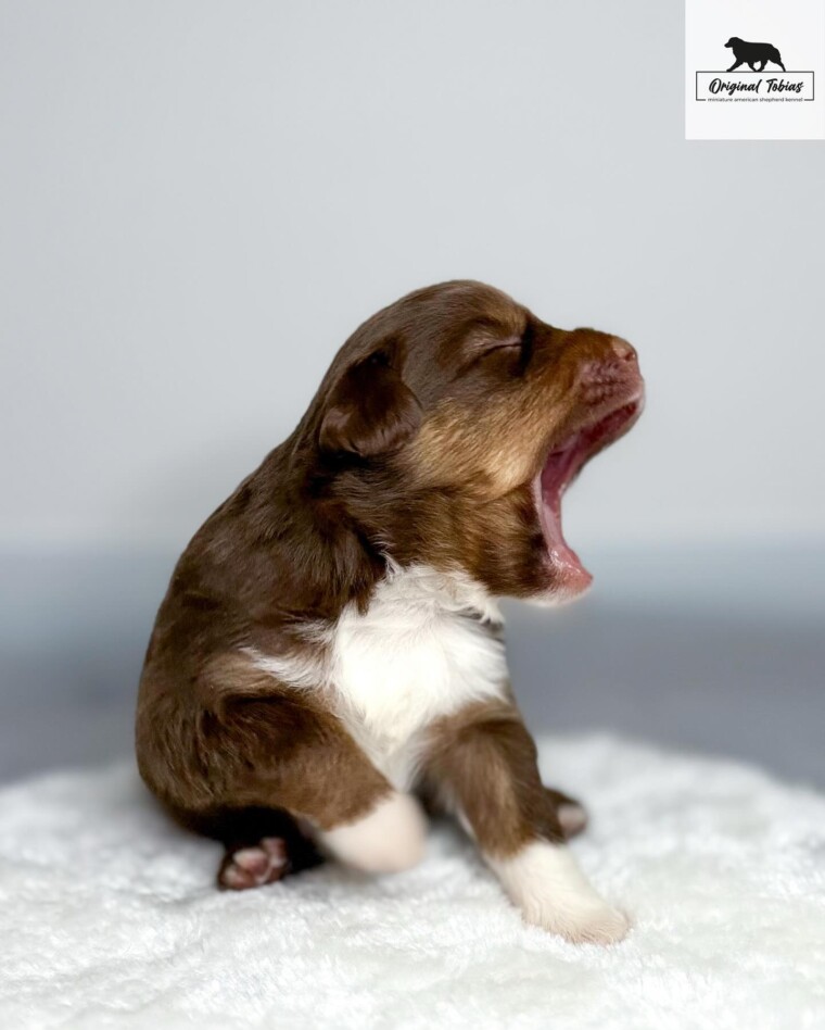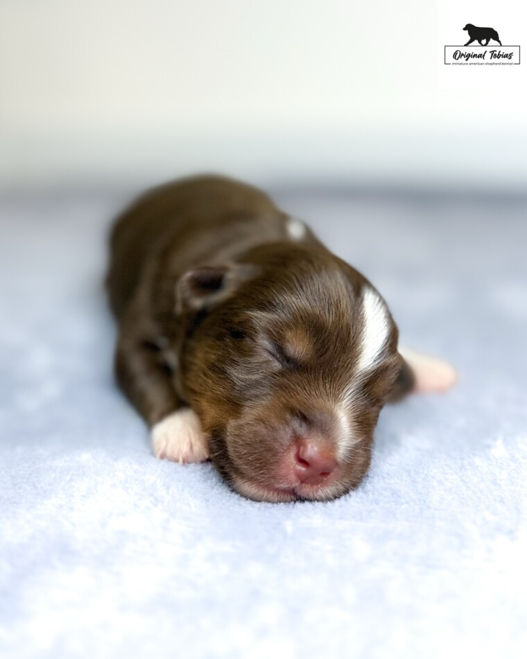 Coral Original Tobias je red tri pes. Korálek od nás dostal světle modrou barvu. Kory se narodil jako poslední štěně s více než dvou hodinovým odestupem od předposlední GG a vážil 255 g.