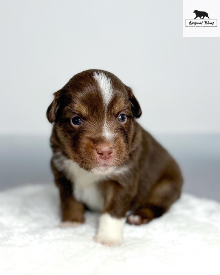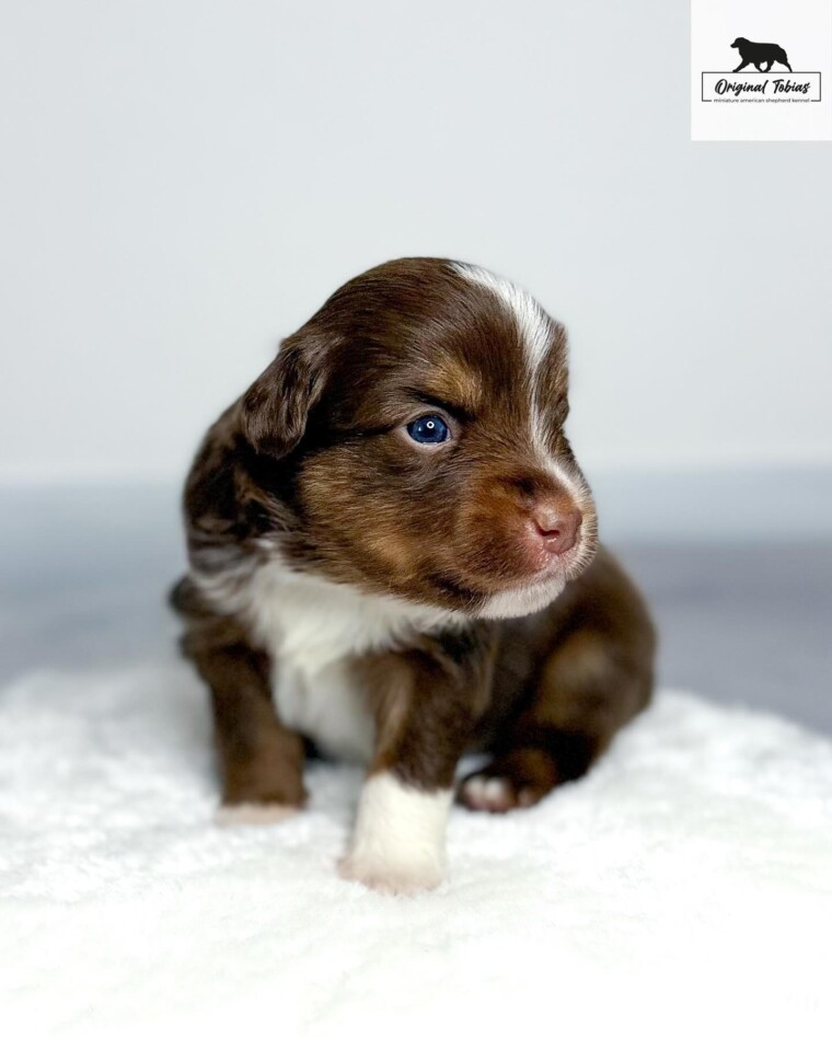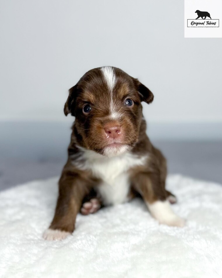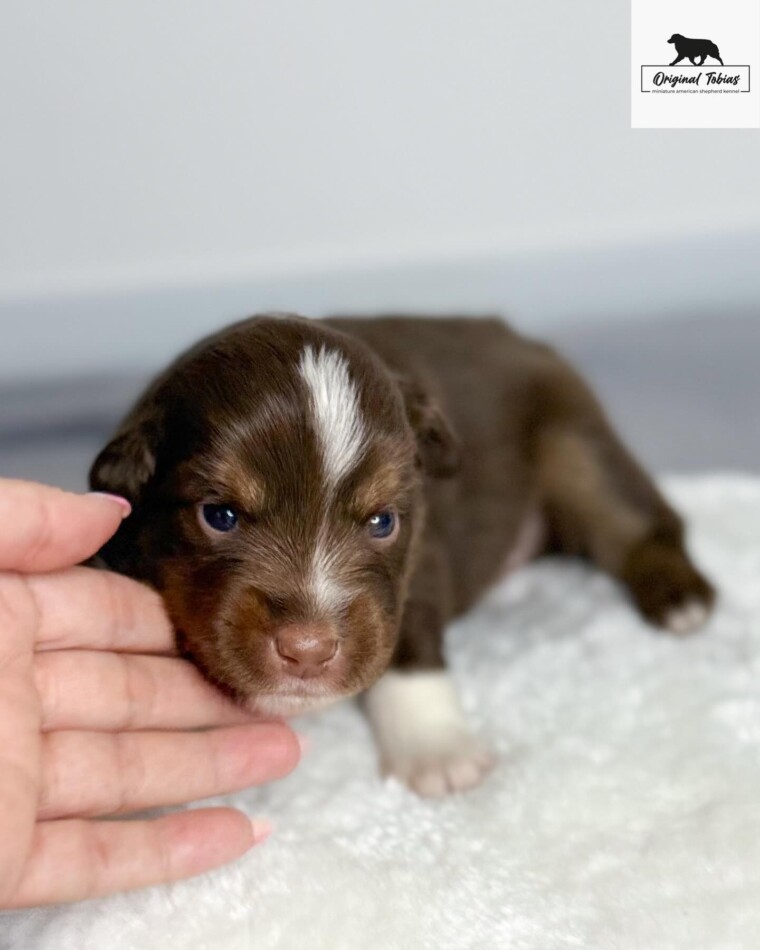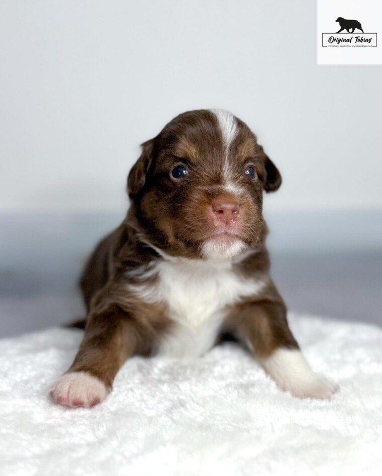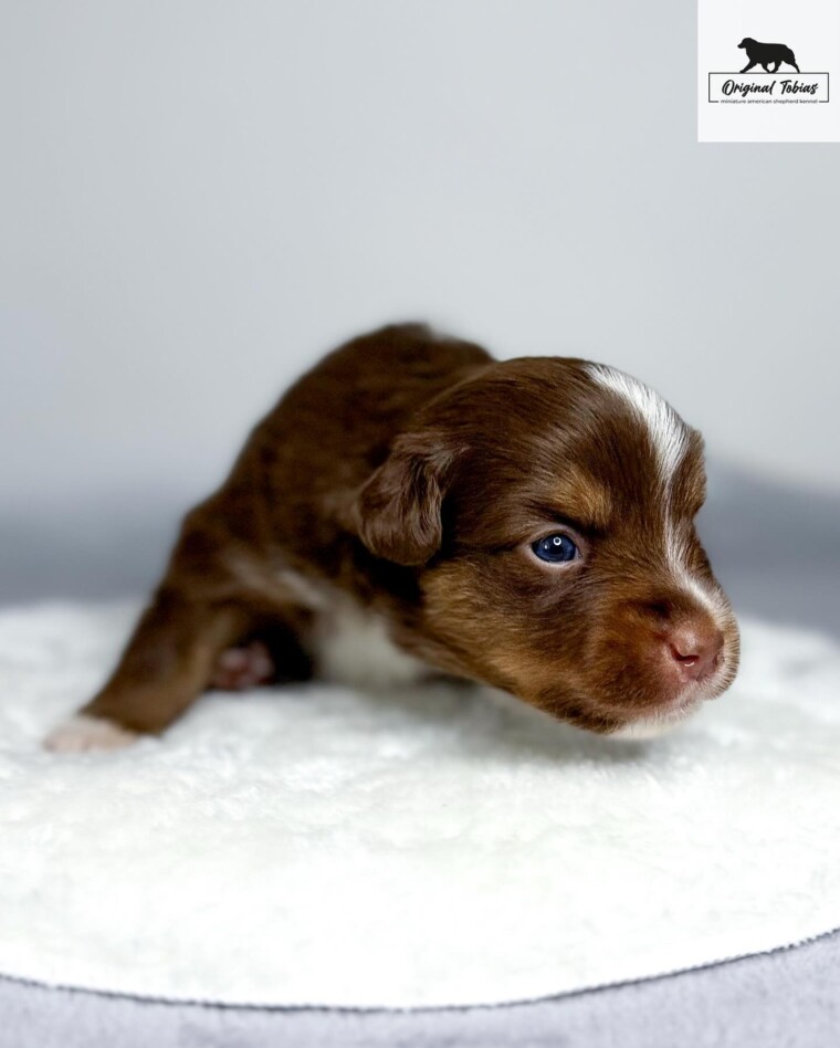 Korálek je štěně, které si nespletete – jeho specifický výraz v obličeji upoutá na první pohled. A mimochodem, z téhle hlavičky se rychle stává krásná čokoláda – bílé znaky rychle mizí. Ve vrhu se projevuje jako sebevědomý a přirozeně dominantní pes – v tom nejlepším smyslu tohoto slova. Umí s přehledem ukončit každý sourozenecký spor a nebojí se postavit ani těm větším. Kory bude silná osobnost a jeho budoucí majitelé s ním získají stabilního a odvážného psa – pokud se výchově budou věnovat včas a důsledně, čeká je skvělý parťák pro život.
